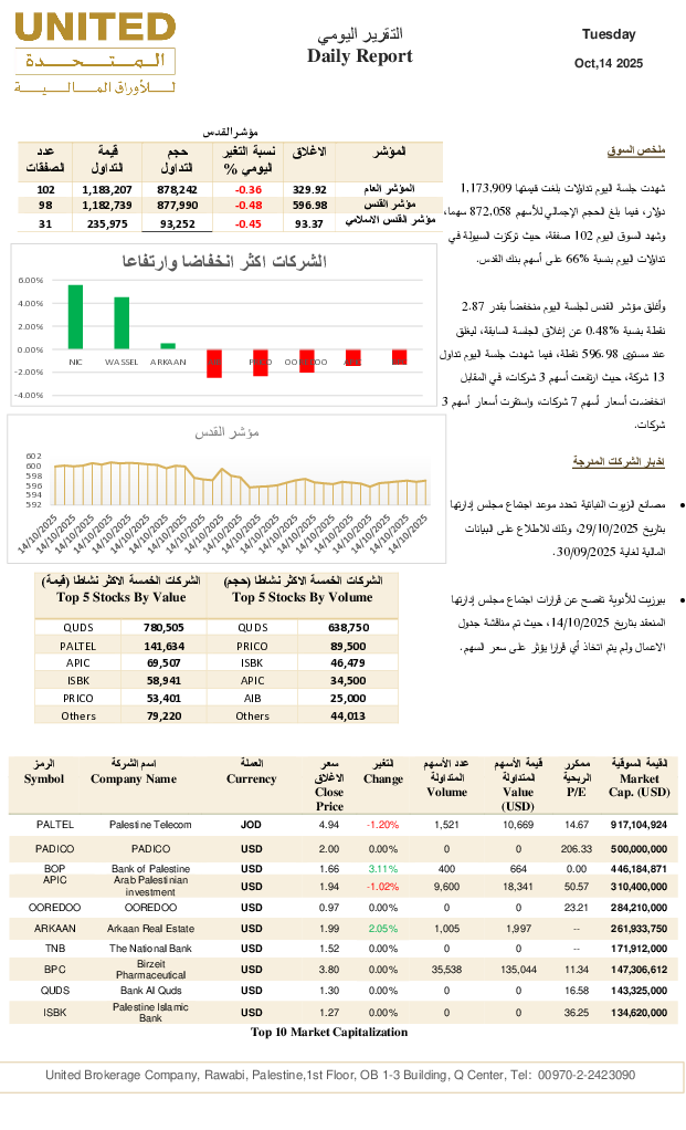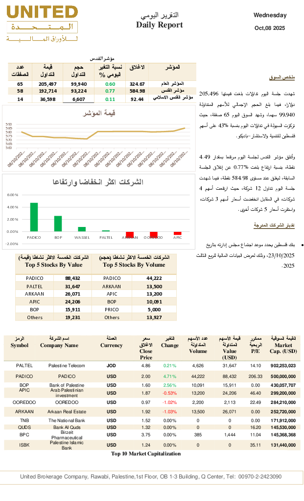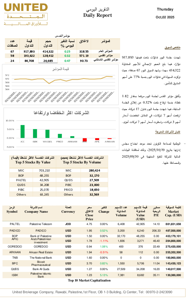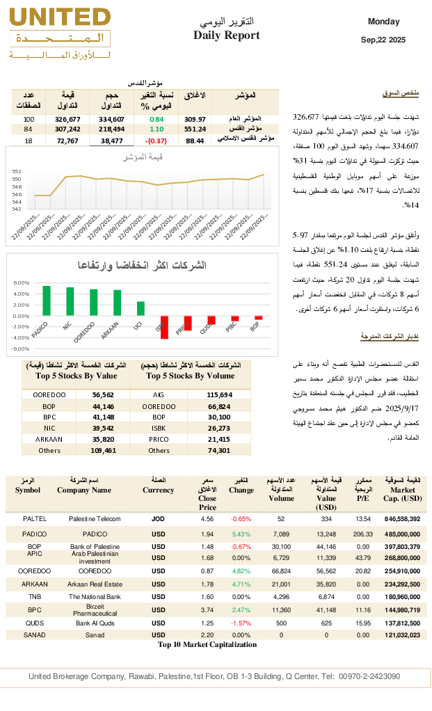 ALMOTAHIDA LLAWRAQ ALMALIA Company is incorporated in Ramallah-West Bank, Company number 563118769, and regulated by the Palestinian Capital Market Authority (PCMA). Registered address: 1st floor, Offices Building, Rawabi 666, Ramallah-West Bank.