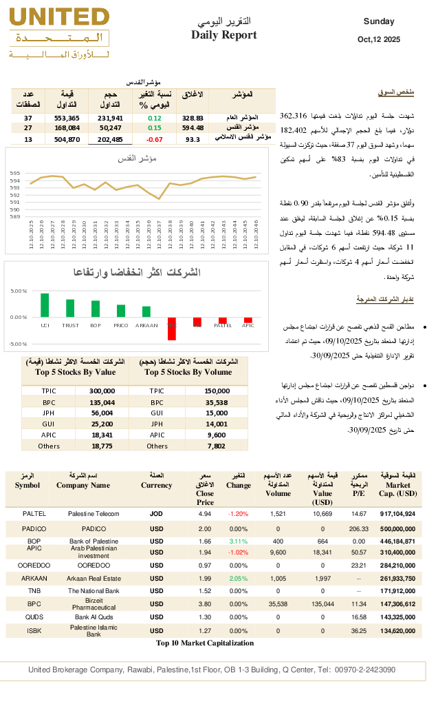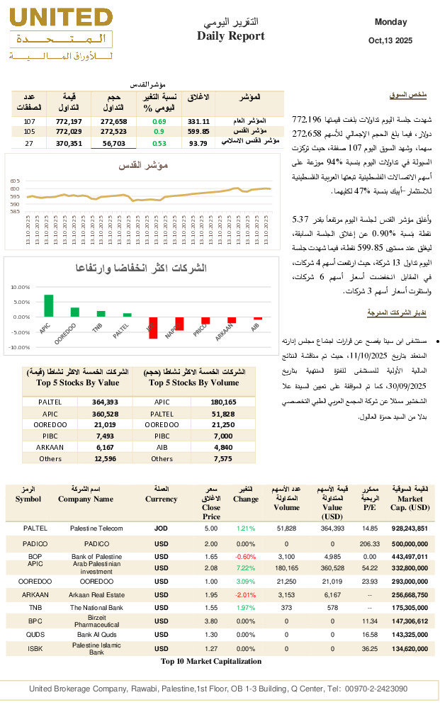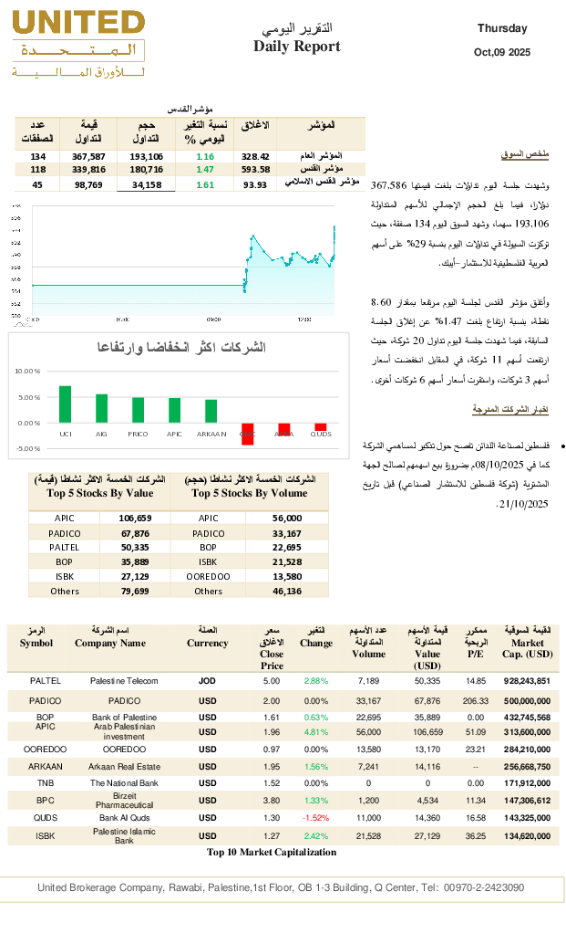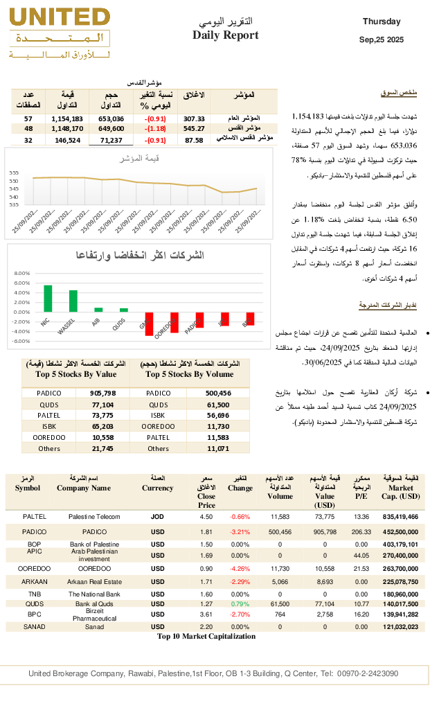 المتحدة أصبحت الخيار الأول للمستثمرين في فلسطين و خارج فلسطين