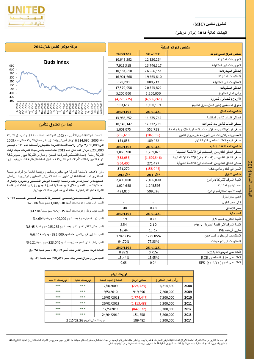 المتحدة أصبحت الخيار الأول للمستثمرين في فلسطين و خارج فلسطين