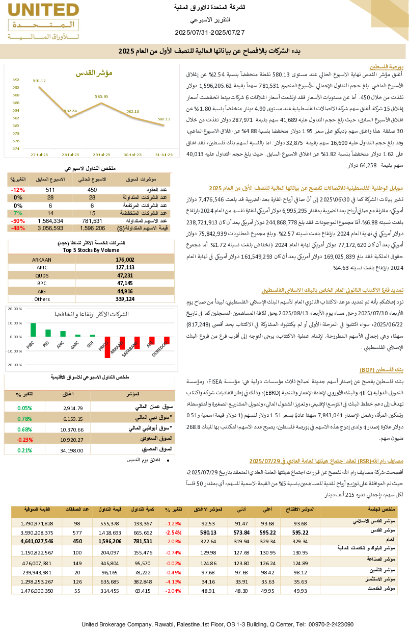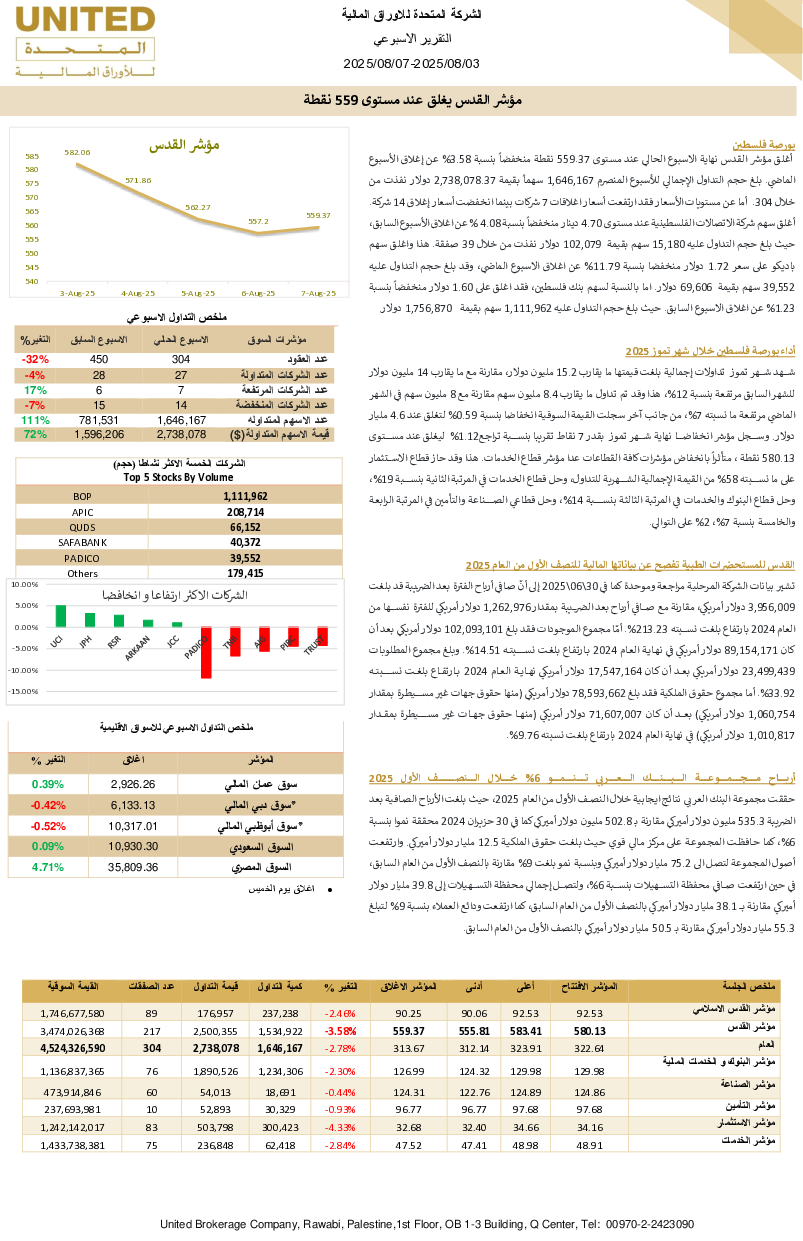 المتحدة أصبحت الخيار الأول للمستثمرين في فلسطين و خارج فلسطين