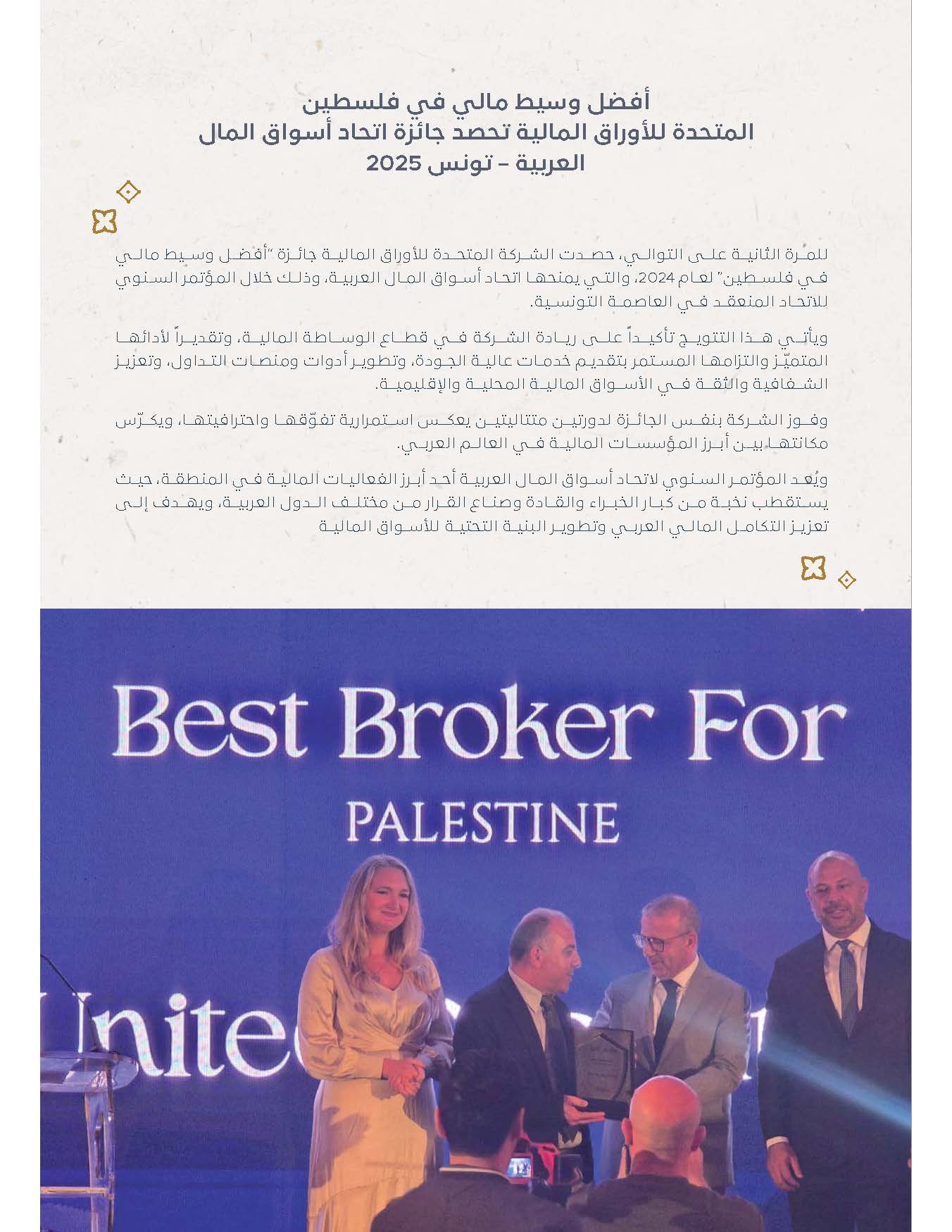 المتحدة أصبحت الخيار الأول للمستثمرين في فلسطين و خارج فلسطين