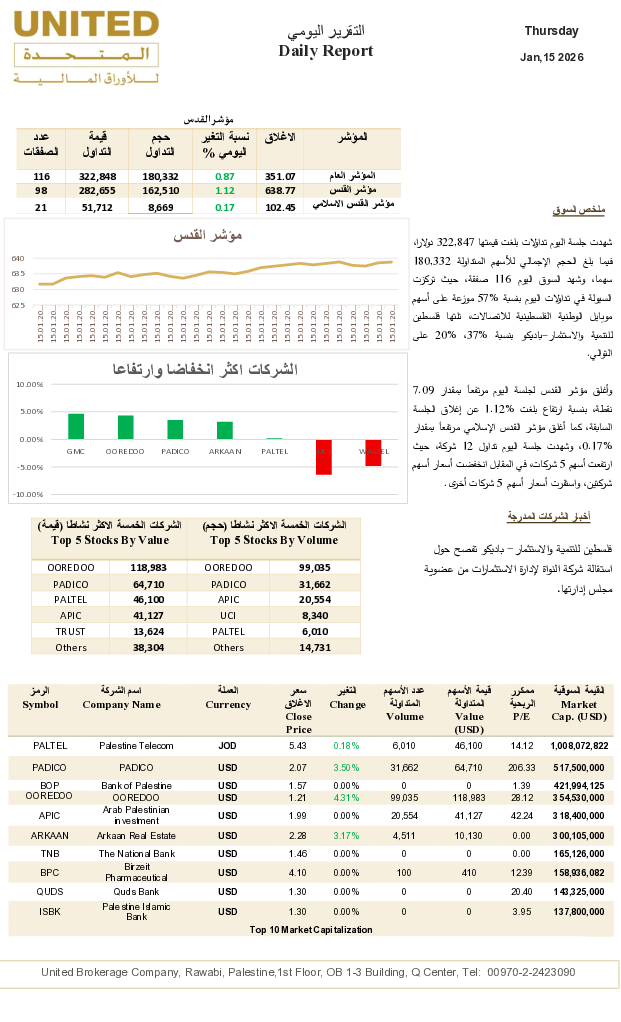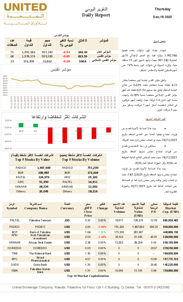 المتحدة أصبحت الخيار الأول للمستثمرين في فلسطين و خارج فلسطين