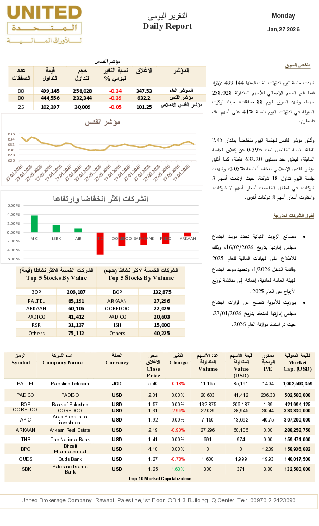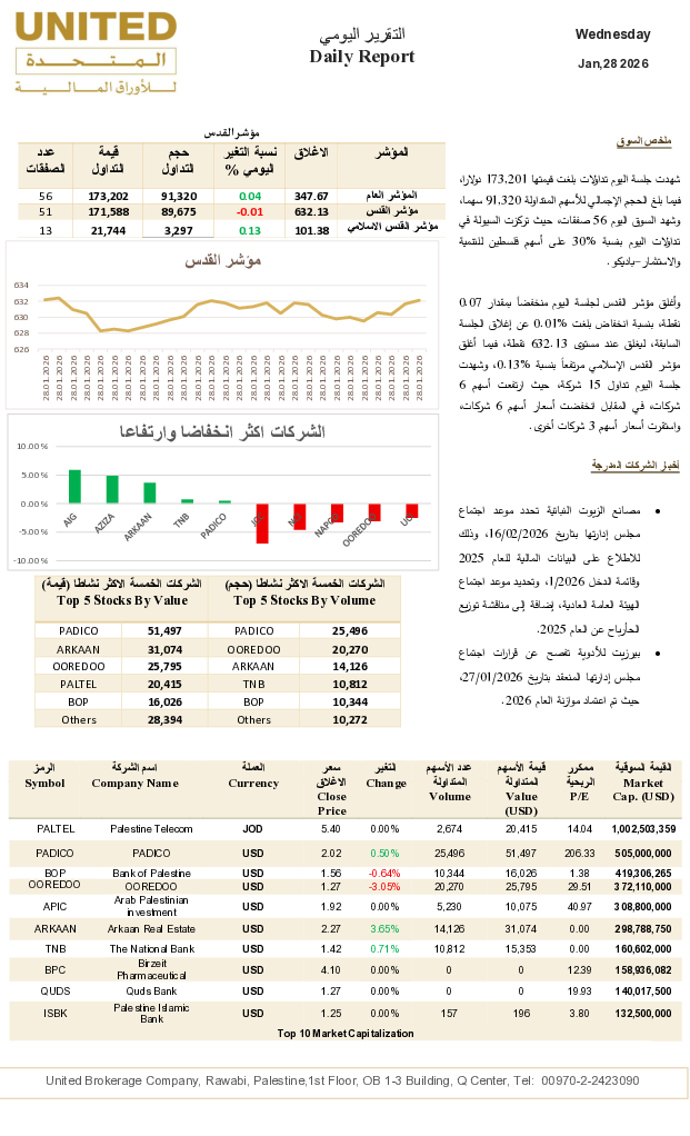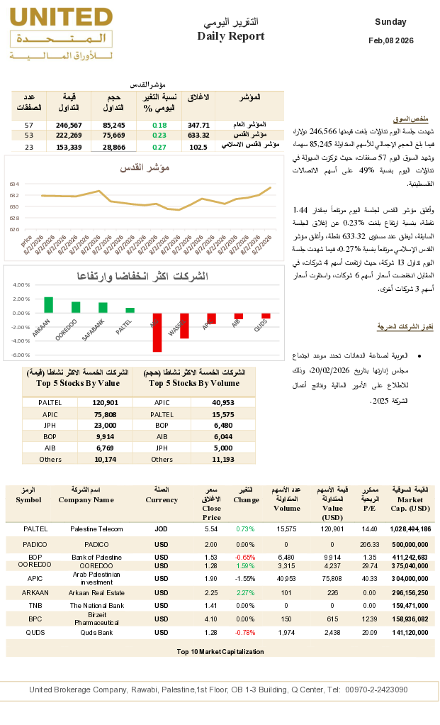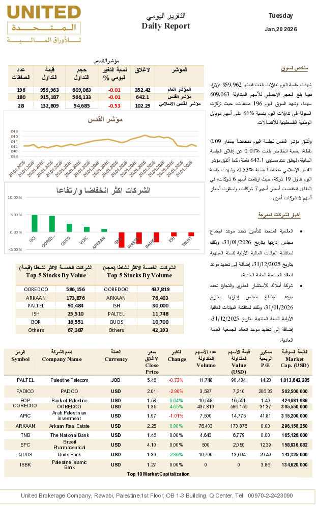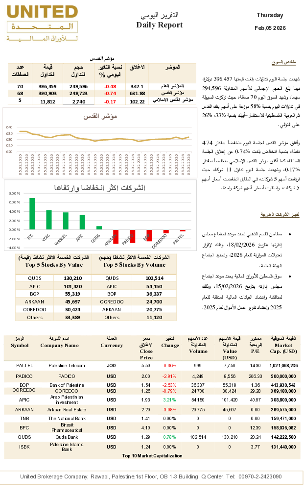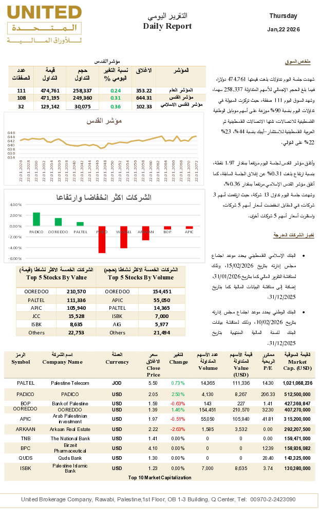 ALMOTAHIDA LLAWRAQ ALMALIA Company is incorporated in Ramallah-West Bank, Company number 563118769, and regulated by the Palestinian Capital Market Authority (PCMA). Registered address: 1st floor, Offices Building, Rawabi 666, Ramallah-West Bank.