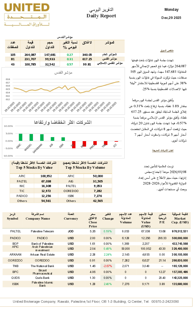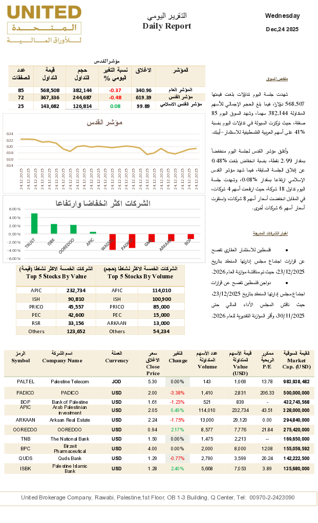 ALMOTAHIDA LLAWRAQ ALMALIA Company is incorporated in Ramallah-Palestine, Company number 563118769, and regulated by the Palestinian Capital Market Authority (PCMA).